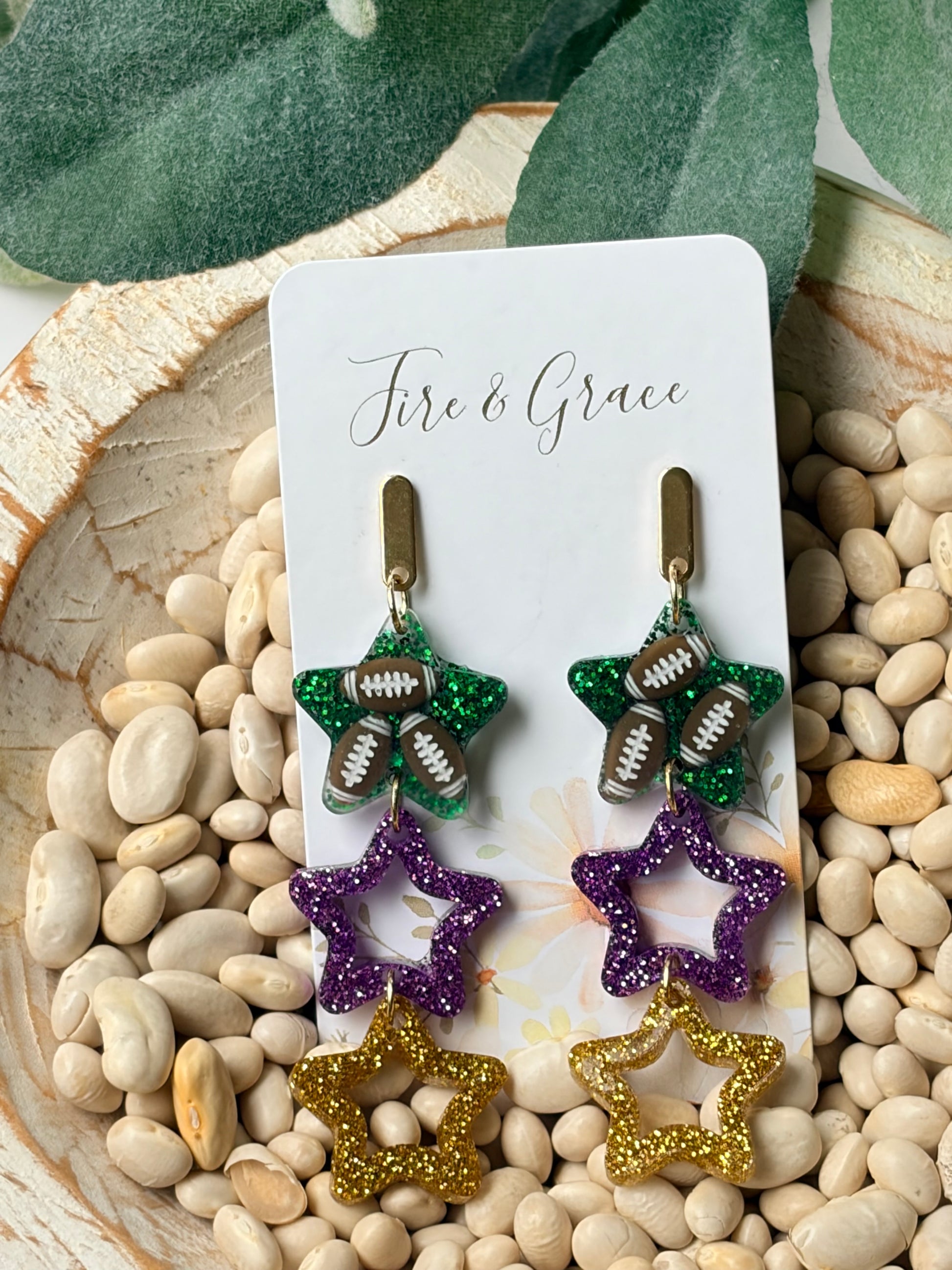 Crafted from lightweight resin, the Football Star Dangle earrings combine comfort with style, making them an ideal accessory for football season.