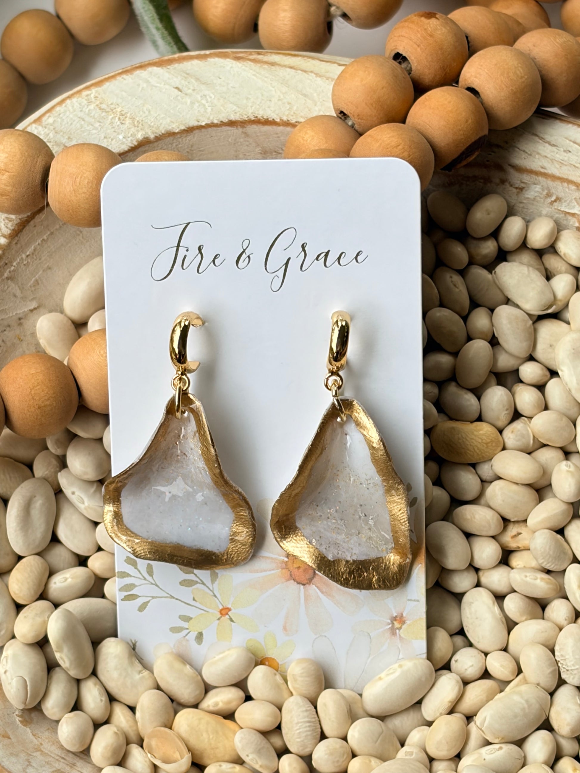 Handcrafted from polymer clay, the LA Oyster earring captures the natural beauty of an oyster shell with exceptional detail. Enhanced by a delicate gold leaf trim, each piece is uniquely crafted, making it a one-of-a-kind accessory.