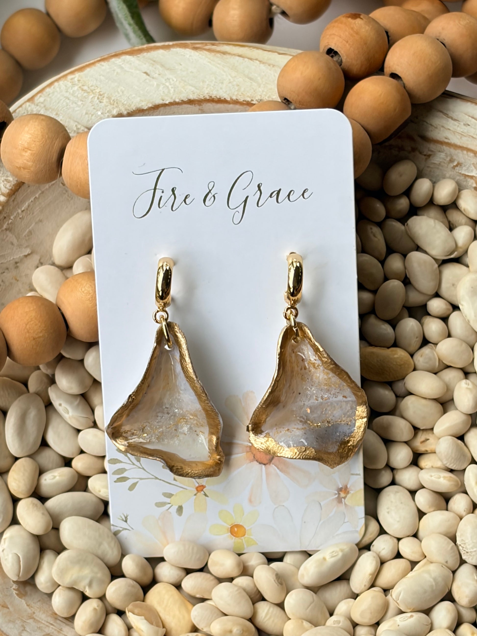 Handcrafted from polymer clay, the LA Oyster earring captures the natural beauty of an oyster shell with exceptional detail. Enhanced by a delicate gold leaf trim, each piece is uniquely crafted, making it a one-of-a-kind accessory.